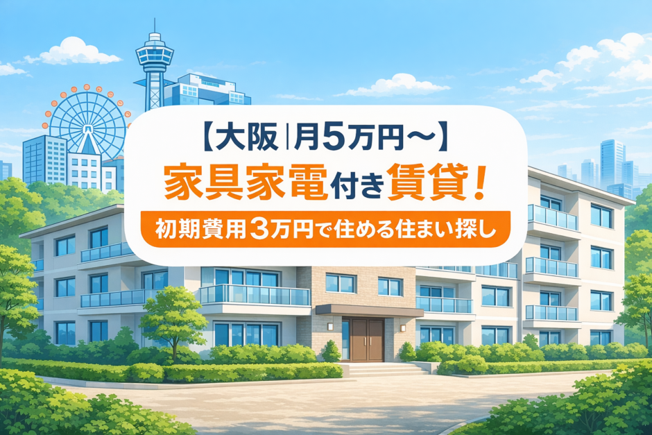 この記事では、大阪で 月5万円〜・家具家電付き・初期費用を抑えて住める賃貸を探している方に向けて、